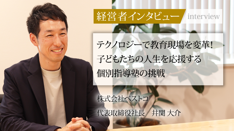 国内最大級の経営者インタビューメディア「社長名鑑」にて、教育事業の株式会社ベストコ 代表取締役社長 井関大介のインタビュー記事が掲載されました。